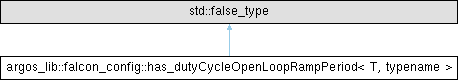 Inheritance diagram for argos_lib::falcon_config::has_dutyCycleOpenLoopRampPeriod< T, typename >: