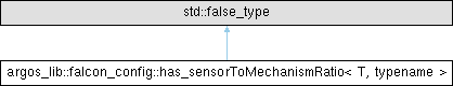 Inheritance diagram for argos_lib::falcon_config::has_sensorToMechanismRatio< T, typename >: