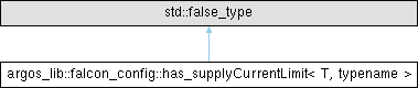 Inheritance diagram for argos_lib::falcon_config::has_supplyCurrentLimit< T, typename >: