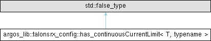 Inheritance diagram for argos_lib::talonsrx_config::has_continuousCurrentLimit< T, typename >: