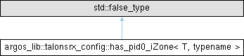 Inheritance diagram for argos_lib::talonsrx_config::has_pid0_iZone< T, typename >: