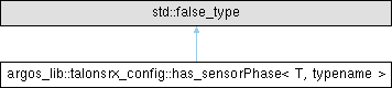 Inheritance diagram for argos_lib::talonsrx_config::has_sensorPhase< T, typename >: